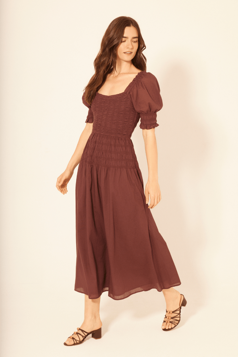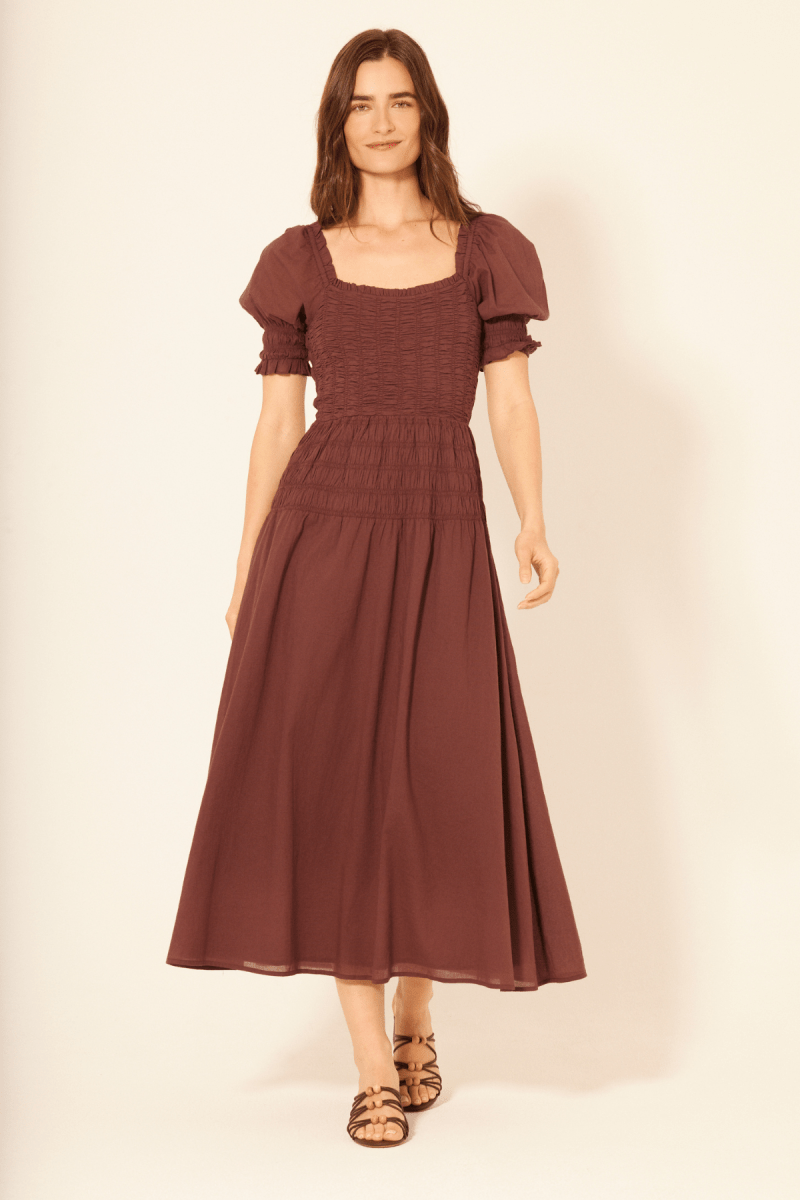 Step into effortless charm with the Adelaide Dress, designed to highlight your waist with flattering smocked detailing. Its playful puff sleeves add a touch of whimsy, making it perfect for sunny days or special outings.