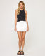 Chic and sexy, the Alyx is not your average tank top. This anything-but-basic fitted staple piece has a halter neckline and (drum roll please)....a shelf bra! Pair this with our Rhodes trousers our your go-to denim for a look that's perfectly casual yet polished.