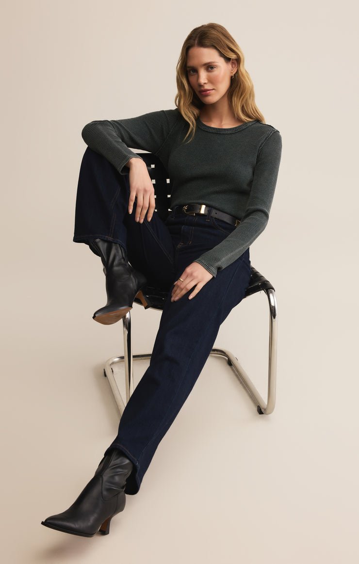 This fitted thermal is all about ease, crafted in soft waffle knit that feels cozy yet lightweight. Wear it solo for a clean look, or layered when the days cool down.