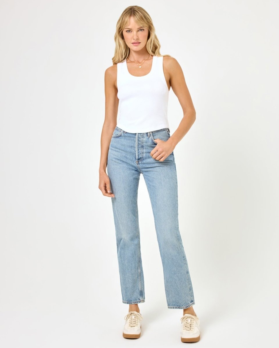 We've got some new basics on the block. The Ash Tank is a fun crop top made from our soft and smooth micro ribbed fabric. It has a wide racerback and a front and back shirt tail adds a sporty-chic vibe. Choose from four versatile colorways.
