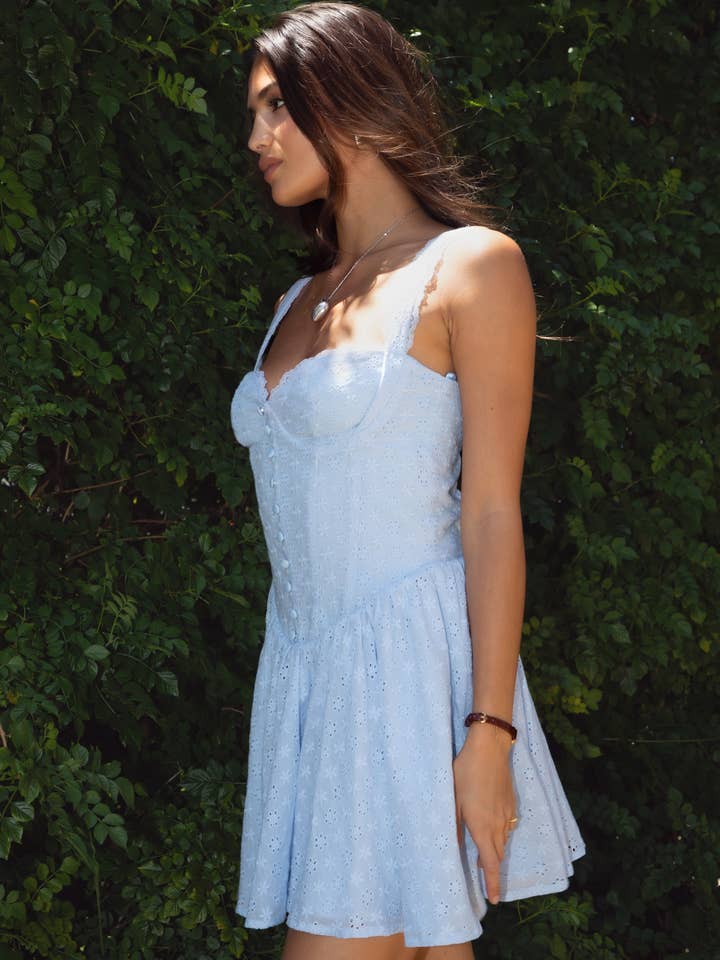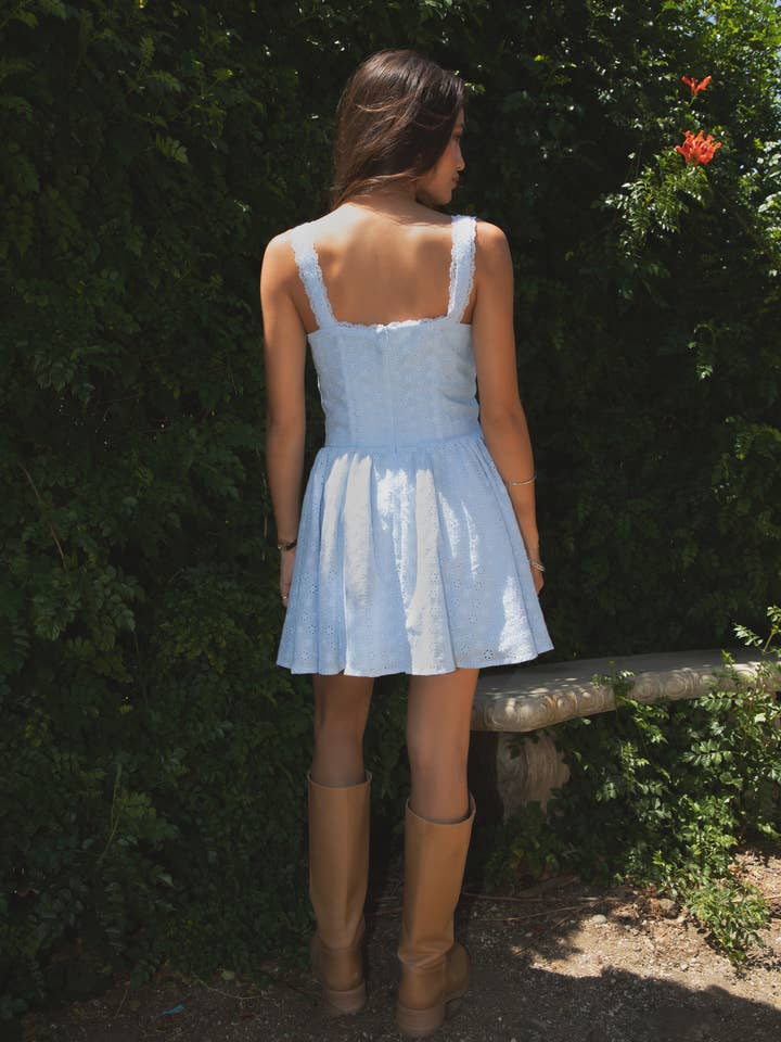 AUDREY EYELET EMBROIDERY MINI DRESS
