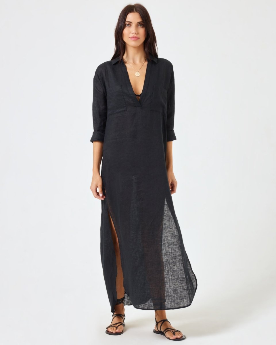 We took a classic LSPACE shirtdress and made her into a maxi with the Capistrano Tunic. There's a scallop hem, collar + v-neck that ties everything together.