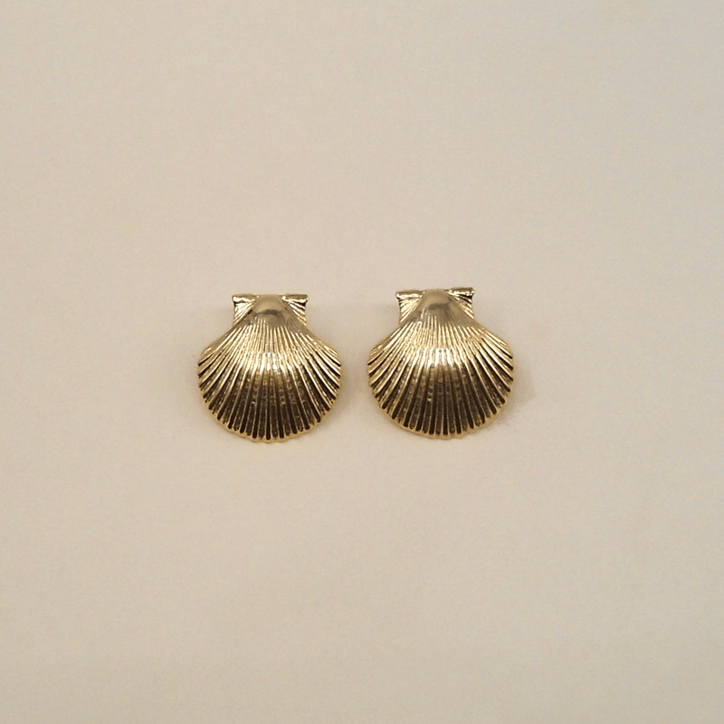 Gold earrings plated with our signature gold plating & cast from a real shell.