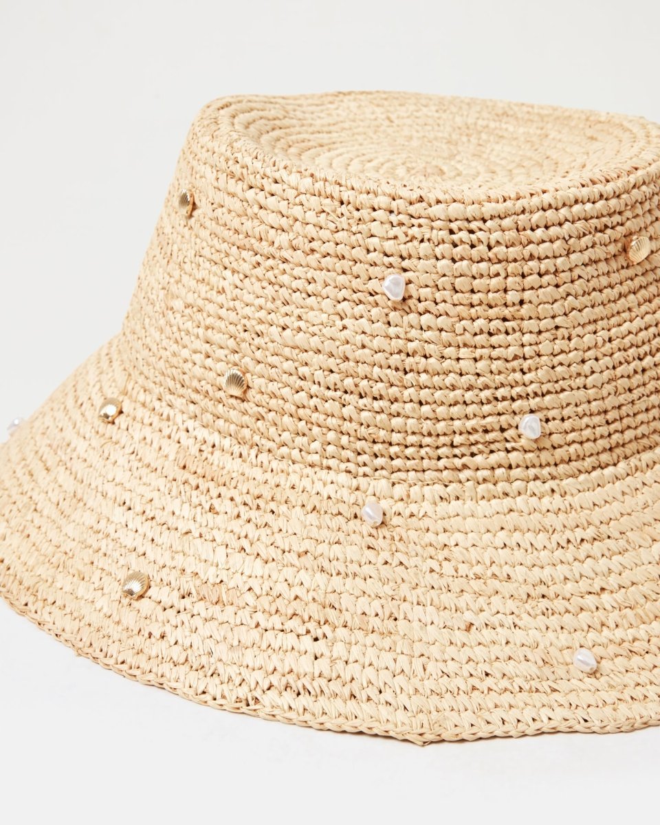 Bucket hats are back and better than ever. The Carmel Island is our latest take on the trend featuring gorgeous pearl and shell details all over.