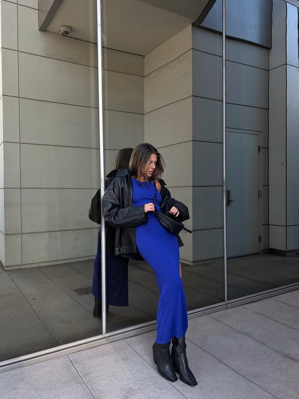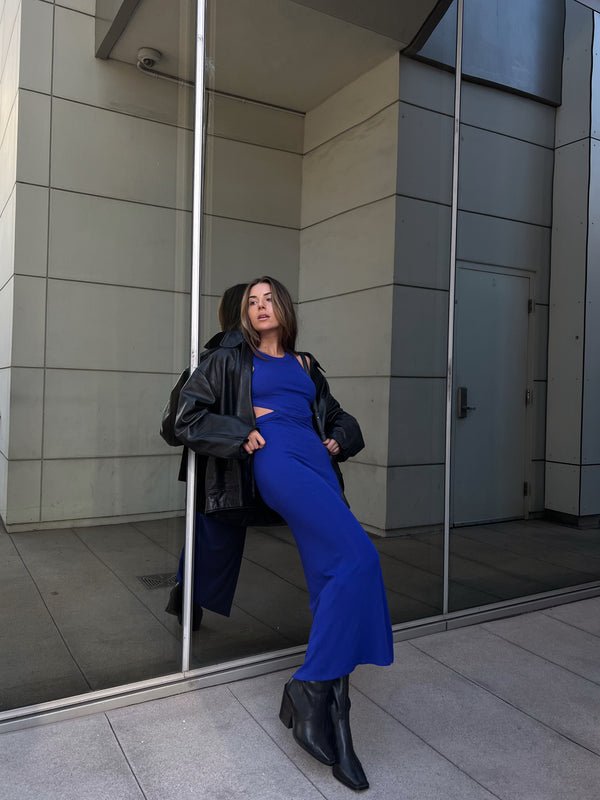 The Charli is our micro rib ankle-length dress that is form fitting + flattering. There's unique details like a high neck, cut-out back waist + lined bodice to make this one standout from the rest.
