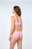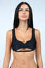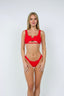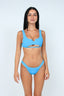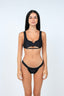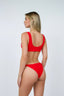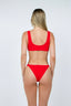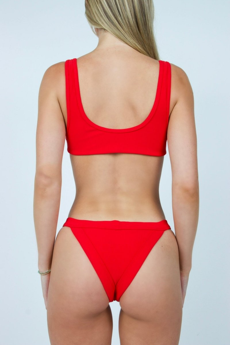 This modern crop bikini top features a scoop neck front with a delicate notched neckline and peek-a-boo cutout beneath the bust. The design is engineered to provide a supportive and flattering fit with an uplifting underband and thicker straps. Feminine and sporty all in one and a perfect layering piece.