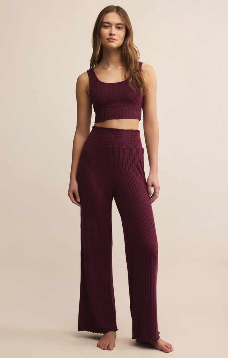These ribbed pants combine a smocked waistband with a timeless fit-and-flare design. The fabric’s gentle stretch keeps them feeling comfortable all day long.