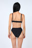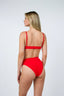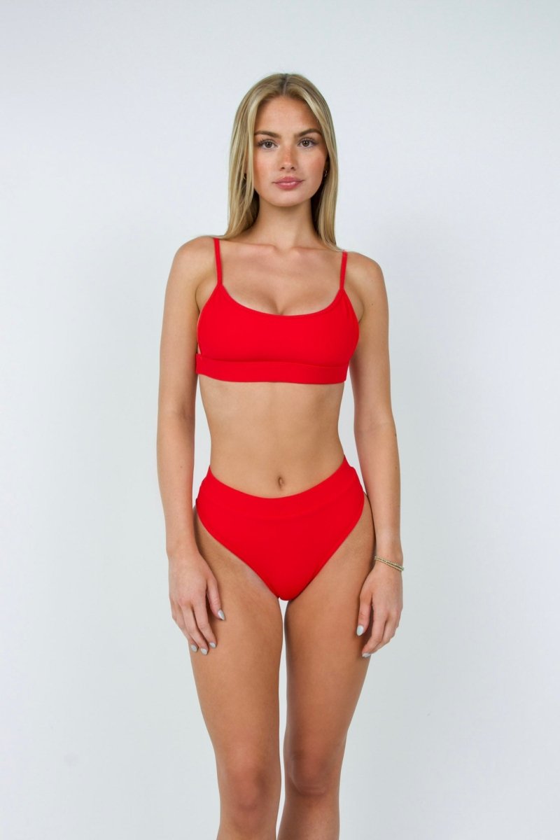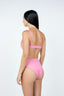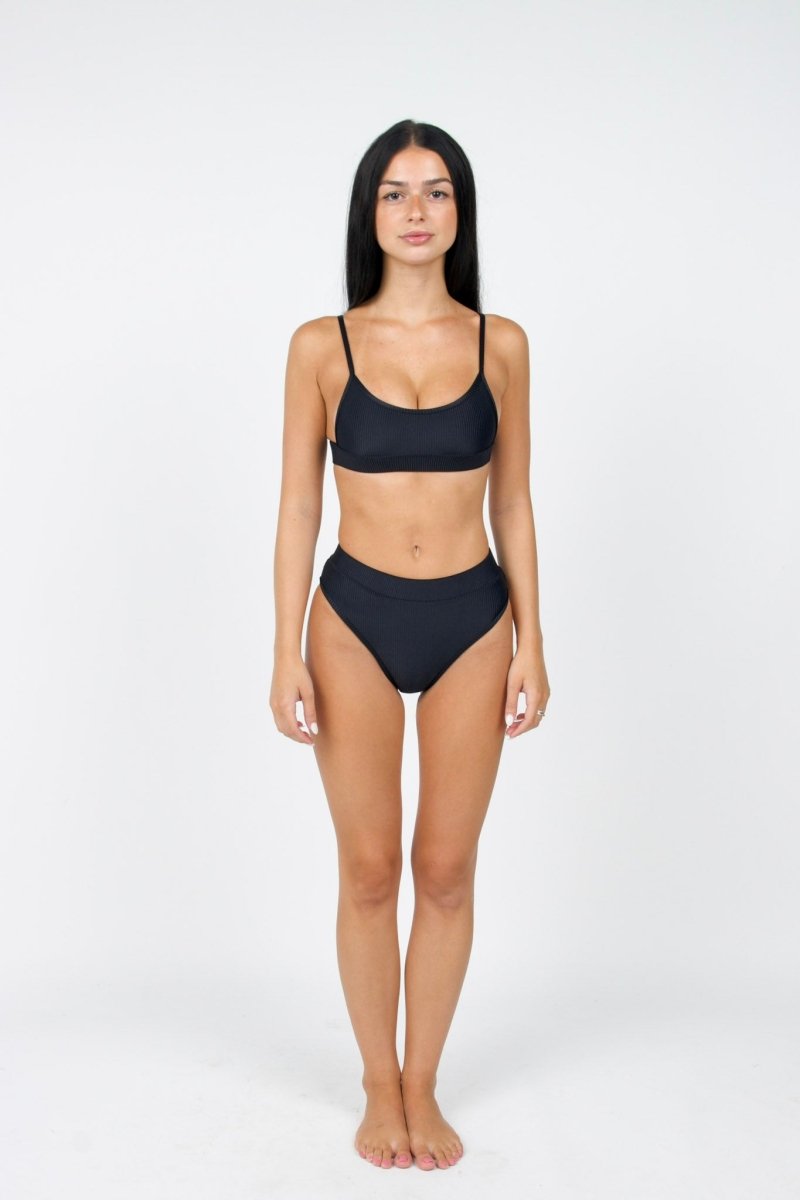This bikini bottom is high waisted heaven. The elastic waistband emphasizes that hourglass figure while the high-cut leg provides some serious lengthening.