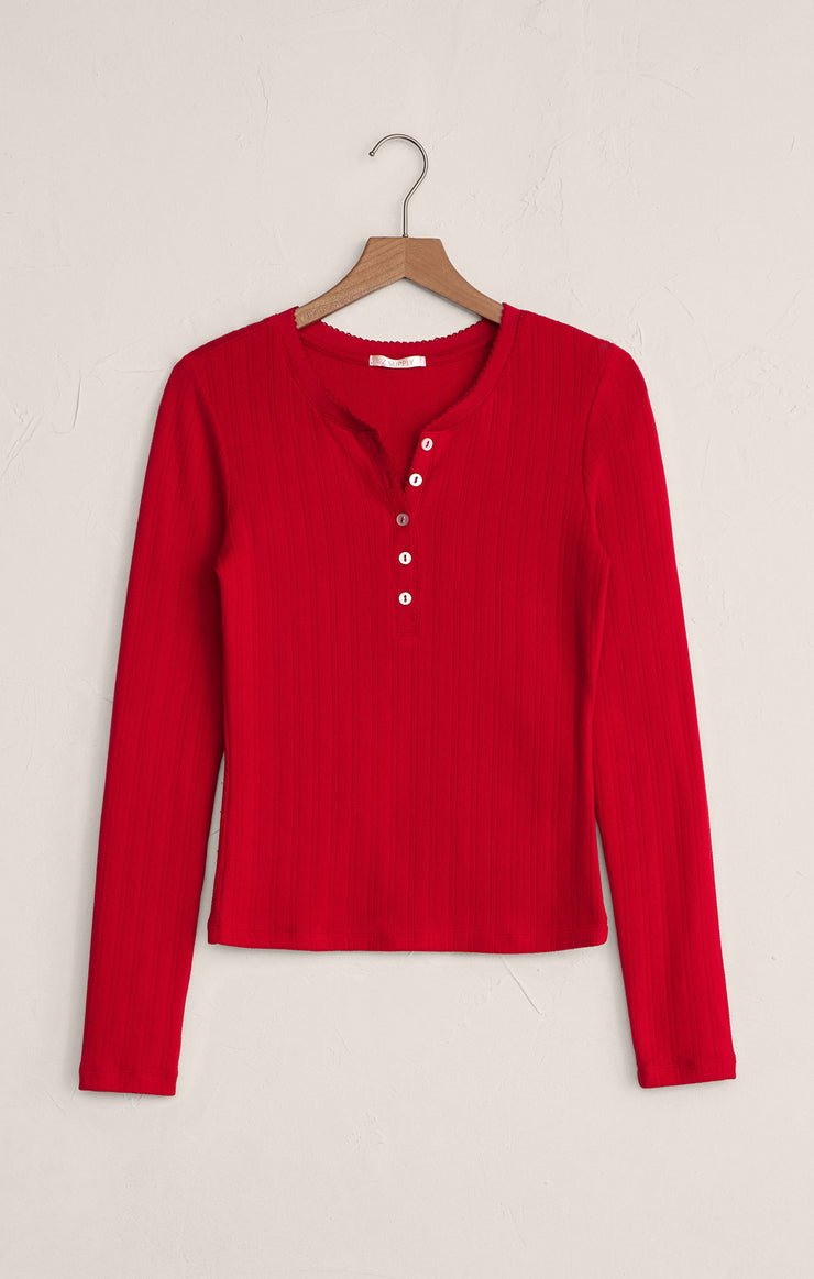 Designed in the same silky-soft pointelle, this short sleeve henley is fitted and versatile. Style it with matching bottoms or denim for a cozy take on everyday dressing.