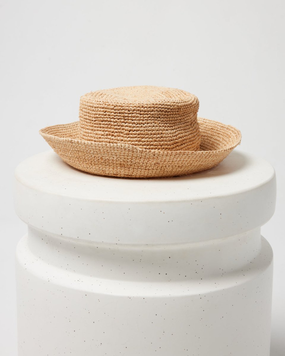 A beach essential, the Isadora Hat is crafted from raffia for style and durability. Its lightweight design offers ample shade for sun-soaked days by the shore, making it the perfect companion for all your adventures.