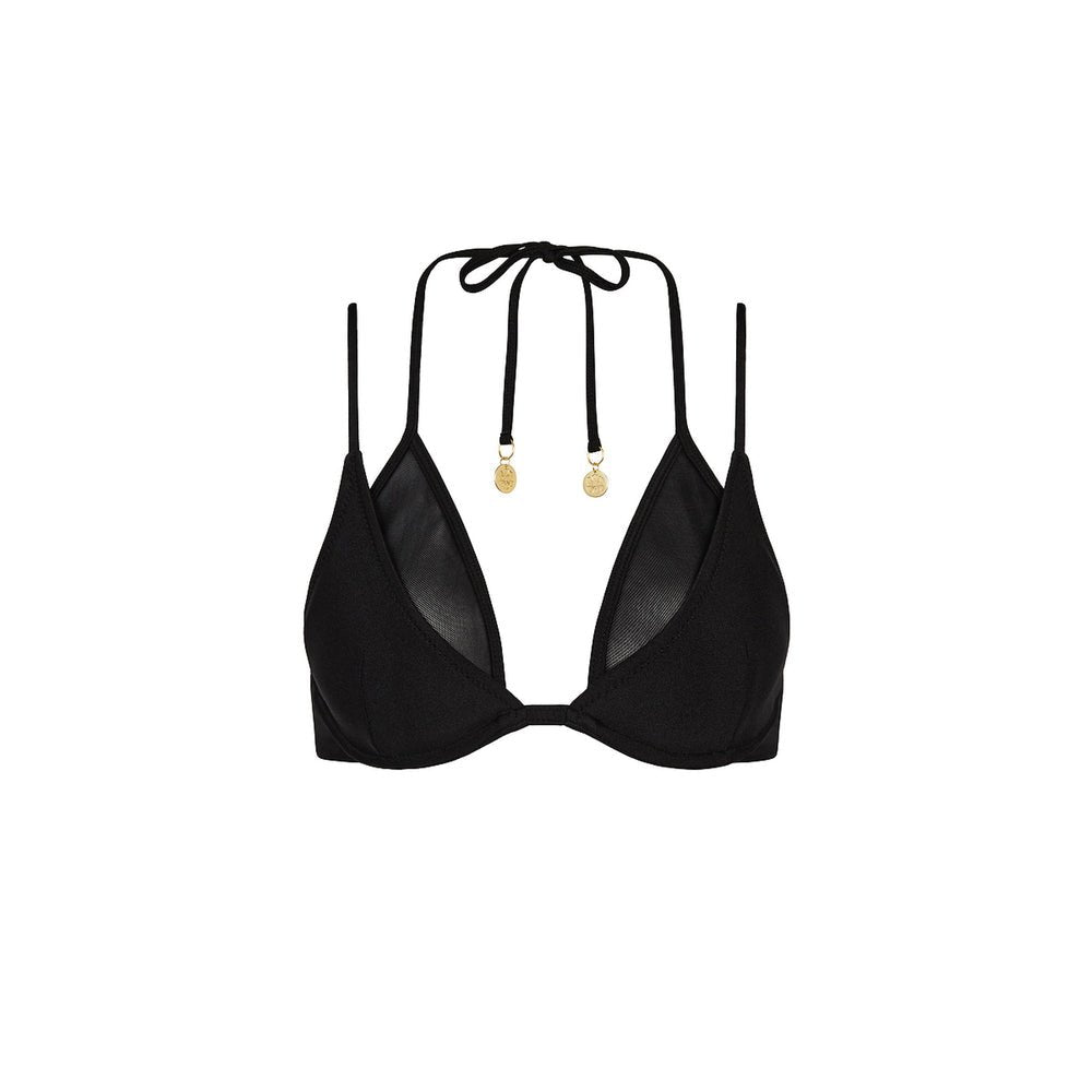 The 'Layered Mesh Underwire' bikini top is made to stand out! Featuring a plunging neckline and peek-a-boo mesh cup detailing, this triangle underwire top provides high cup support without compromising on style.
