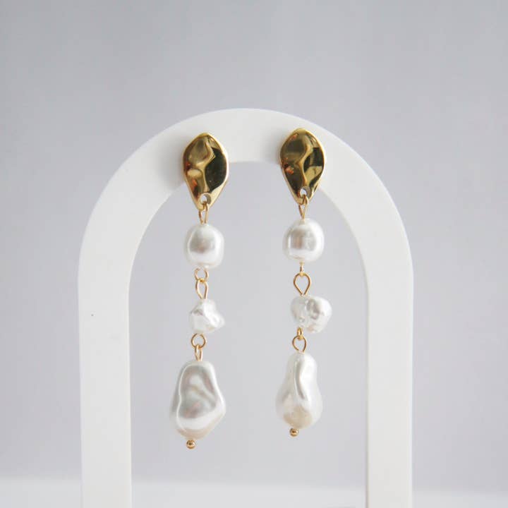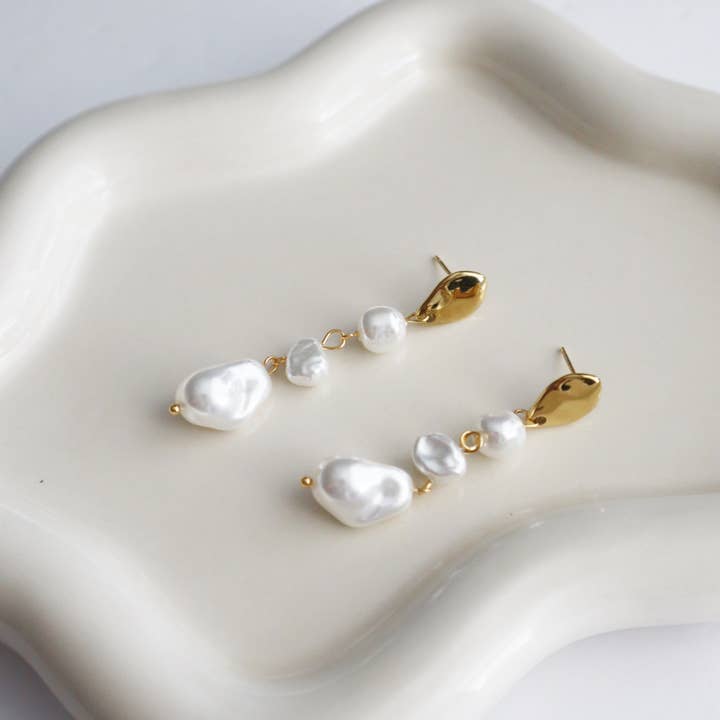 A fresh take on timeless elegance. The Lune Pearl Earrings showcase lustrous baroque pearls paired with gold detailing. Each pearl is one-of-a-kind, adding subtle elegance to every look. Lightweight, hypoallergenic, and designed for everyday moments that feel a little more special.
