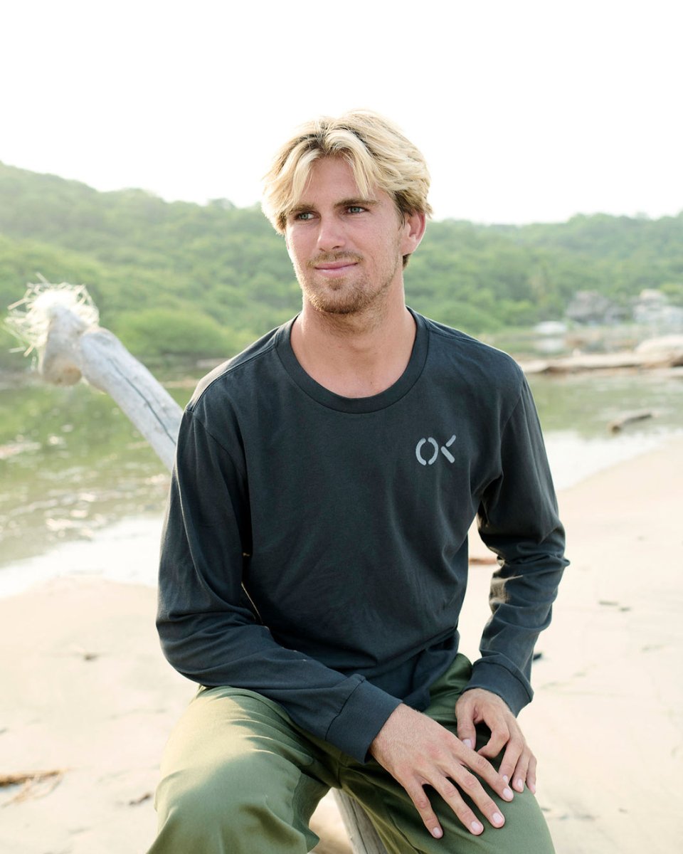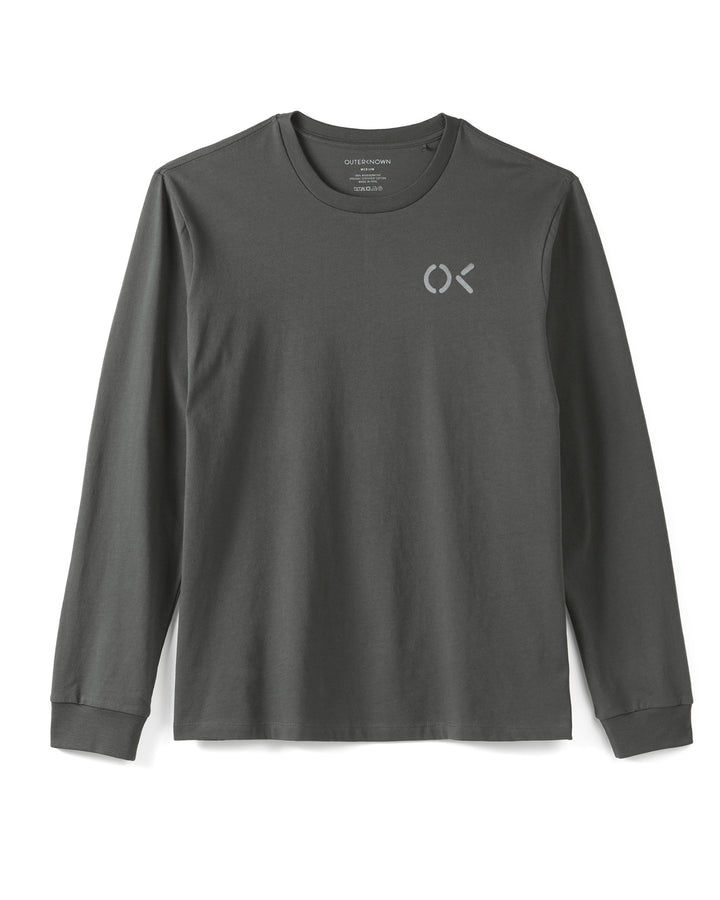 A relaxed fitting, soft and breathable long sleeve tee responsibly crafted from Regenerative Organic Certified® cotton, proudly featuring our OK Stencil logo on the chest.