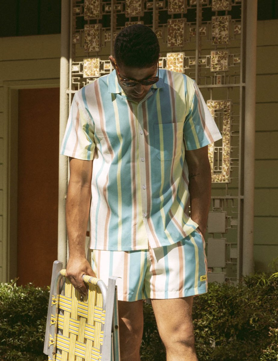 PASTEL STRIPE LEISURE STRETCH BUTTONUP