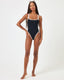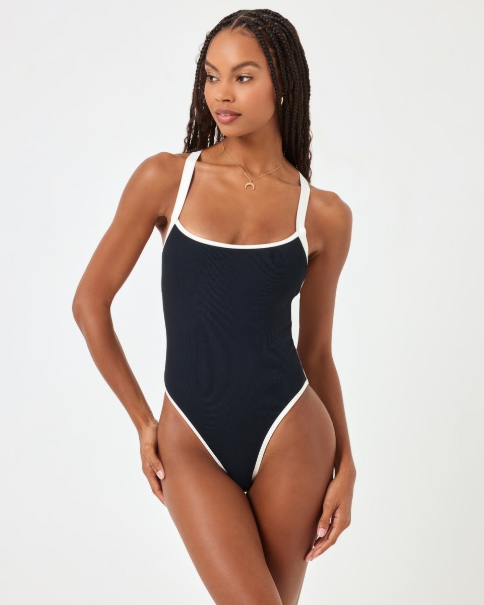 Ribbed Baewatch One Piece Swimsuit - Black-Cream