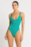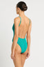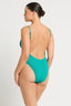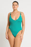 The Ring Elena One Piece features a plunge neckline with a low scoop back. This style features delicate thin, adjustable straps with a recycled resin ring detailing. Handcrafted in Australia from bond-eye The Authentic Crinkle™.