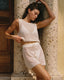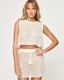 As easy to wear as she looks, the Sander Skirt is a crochet knit mini skirt with a tie at the waistband. Wear it as a set with the Sander Top.