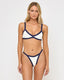 Our signature color blocking got a major revamp with the Taylor Bikini Top. This bralette is bringing maximum style with minimum coverage. Thick straps provide medium support while a cinched front showcases your beautiful curves.